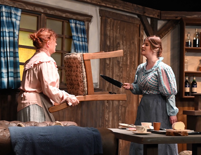 Das Ensemble zeigte sich in Bestform: Dagmar Wehrmann als resolute Wirtin, Wolfgang Watty als ihr trinkfreudiger Mann und Nicolas C. Ducci als bedrohlicher Knecht Jan machten das Fährhaus zum Treffpunkt zwielichtiger Gestalten. Hier geht es weniger um ein fröhliches Beisammensein – sondern vielmehr darum, wie man möglichst geschickt an das Geld anderer Leute kommt.